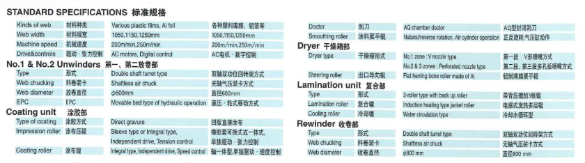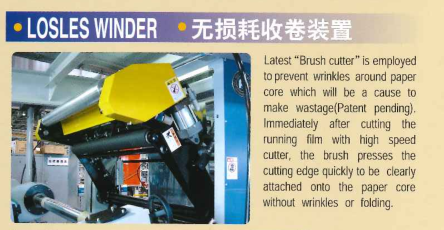 該設(shè)備標(biāo)準(zhǔn)配備有“密封式刮刀”,“無損耗式收卷部”,匯集有降低廢品率的種種技術(shù),是操作簡便,高線率運(yùn)轉(zhuǎn)的最新型干式復(fù)合機(jī)。